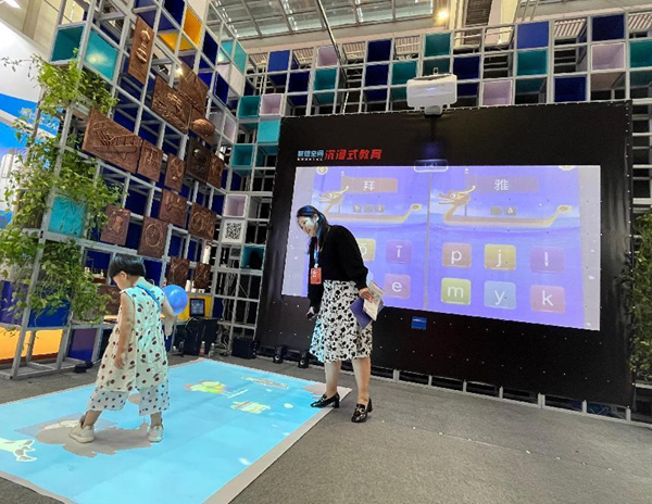 《互動(dòng)投影學(xué)習(xí)系統(tǒng)》除了“A夢(mèng)計(jì)劃”,博覽會(huì)上還展示了其他與學(xué)習(xí)相關(guān)的產(chǎn)品和技術(shù),如互動(dòng)投影學(xué)習(xí)系統(tǒng)。這種系統(tǒng)通過(guò)游戲化學(xué)習(xí)的方式,讓學(xué)生通過(guò)玩游戲來(lái)學(xué)習(xí)知識(shí),從而提升學(xué)習(xí)的趣味性和效率。其中,數(shù)學(xué)籃球和單詞追追樂(lè)是兩個(gè)特別引人注目的項(xiàng)目。這些項(xiàng)目不僅幫助學(xué)生提高學(xué)習(xí)和記憶能力,還通過(guò)游戲增強(qiáng)了學(xué)生的身體協(xié)調(diào)性和力量。數(shù)學(xué)籃球:1、通過(guò)漢字發(fā)音幫助學(xué)生更好地學(xué)習(xí)和記憶學(xué)過(guò)的漢字;2、提升學(xué)生學(xué)習(xí)的興趣和主動(dòng)性;3、通過(guò)投球擊打,提升學(xué)生的身體協(xié)調(diào)性和力量。