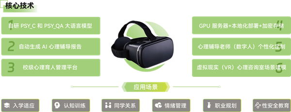 回首現場,耳畔似乎依舊熱鬧非凡,觀展人群如山。其中理化生考試智能實驗平臺和AI心理輔導解決方案中的心理解憂AI助手(VR場景)這兩款自研產品,吸引了大家的興趣,觀展群眾紛紛前來體驗和交流。
