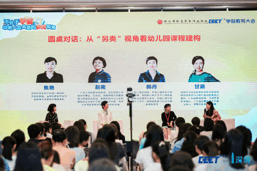 最后,一個特別的圓桌對話,以“另類視角看幼兒園課程建構(gòu)”為主題,以面對面交流的形式圍繞話題進行對談。特邀嘉賓甘露園長,與焦艷、趙南和韓丹嘉賓一同,為現(xiàn)場來賓帶來了多維度、多角度的思考。