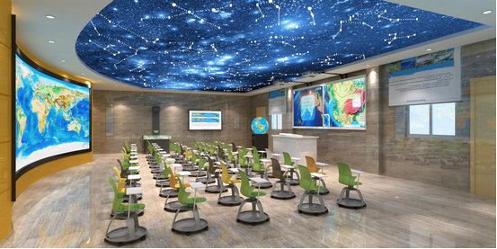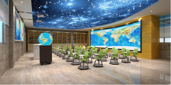 教室通過多媒體球幕投影演示儀系統(tǒng)、數(shù)字立體地形,為地理教學(xué)、科普活動、環(huán)境教育提供先進的數(shù)字化教學(xué)環(huán)境。