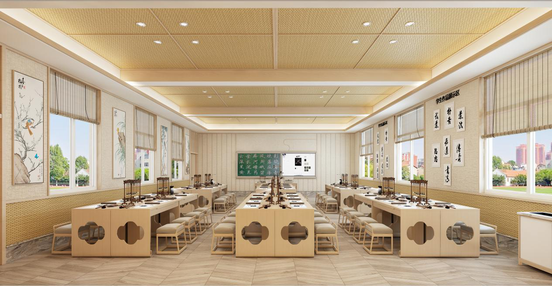 羿飛數(shù)字化歷史專用教室匠心獨運,布局上主次分明,井然 有序,裝修上古樸典雅,氣勢恢宏。置身其中,仿佛穿越了歷史 長河。那燦爛輝煌的中華文明、光彩奪目的民族文化,歷久彌新 的文化氣息撲面而來,為學(xué)生們營造了一種穿梭歷史時空的學(xué)習(xí) 氛圍,從而更好地理解歷史的深邃與厚重。