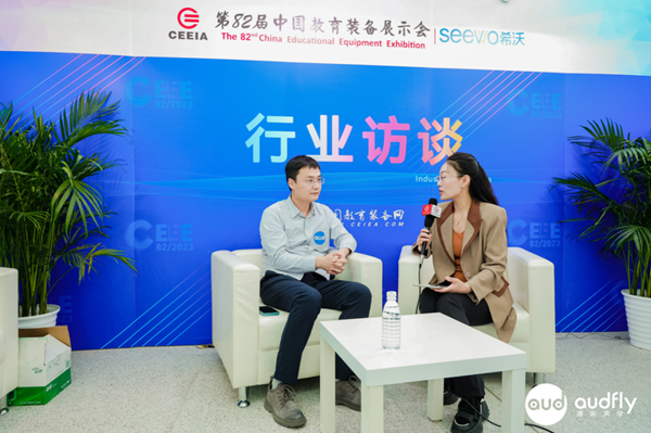 在采訪區,清聽聲學CTO匡正博士接受了中國教育裝備網的采訪。明天上午,匡正博士還將出席“推進教育信息技術應用創新發展論壇”,并發表《寧靜校園與青少年聽力防控》主題演講,與各位專家一同解讀教育信息技術應用創新政策,研討教育信息技術應用創新發展路徑。