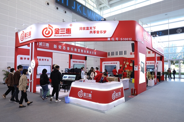 展會現場,金三惠電鋼琴新品亮相,以場景化的形式展現科技賦能教育的美好圖景,全面展示了金三惠深厚的技術實力。現場領導專家、老師和參觀者對金三惠智能電鋼琴產生了濃厚的興趣,紛紛駐足,觀摩新產品。來自全國各地的領導、客戶、教師,圍住了金三惠的展臺,共同咨詢、觀摩與交流軟件新版本,體現出大家對金三惠產品的喜愛與認同。