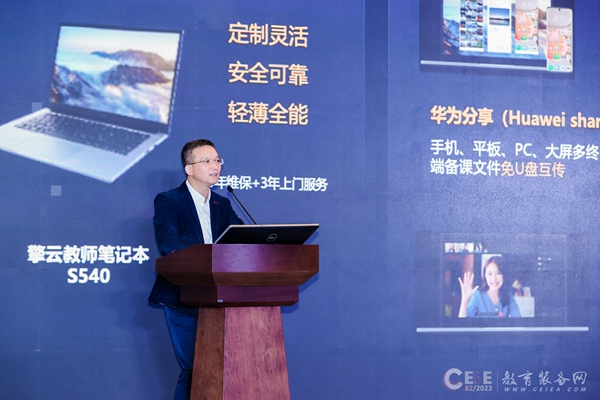 中國教育裝備行業協會副會長夏國明和華為終端業務大中華區副總裁、政企業務部部長賀磊分別為論壇致辭,中國教育裝備行業協會教育信息化裝備分會常務副理事長丁新主持論壇會議。