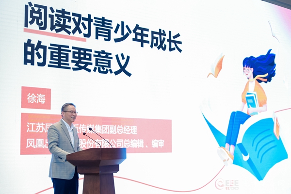 江蘇省教育廳副廳長、黨組成員顧月華、江蘇鳳凰出版傳媒集團副總經理、鳳凰出版傳媒股份有限公司總編輯、編審徐海、天津師范大學黨委書記曲凱分別作報告。