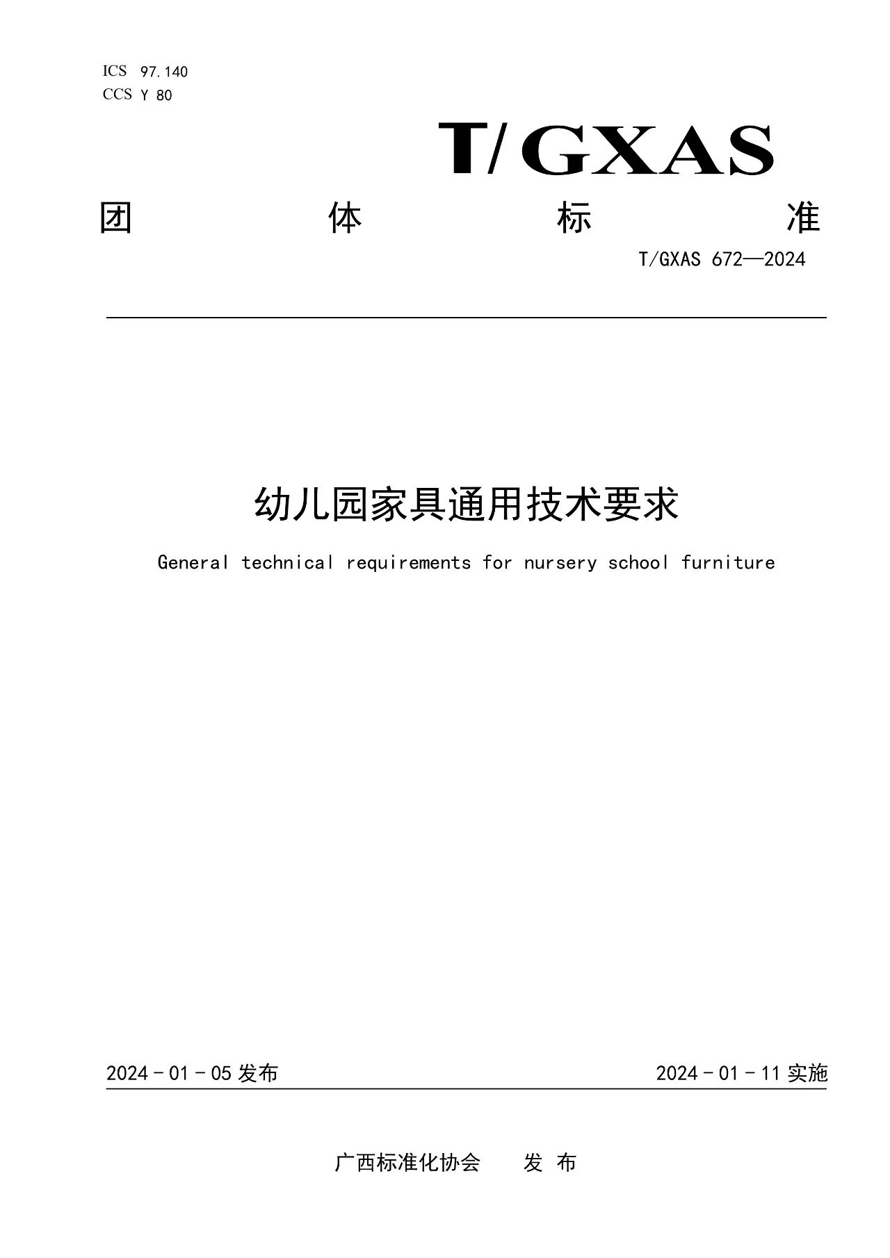 2024年1月12日,由廣西教育裝備行業協會牽頭,壯童教育設備(廣西)有限公司、廣西博童教育發展有限公司、南寧四軒科教辦公用品有限公司、廣西幼兒師范高等?茖W校、廣西教育裝備行業協會、廣西托幼行業產教融合共同體、廣西壯族自治區衛生健康委員會幼兒園、廣西軍區幼兒園、南寧高新技術產業開發區梅沙幼兒園等單位共同起草的團體標準《幼兒園家具通用技術要求》正式發布。