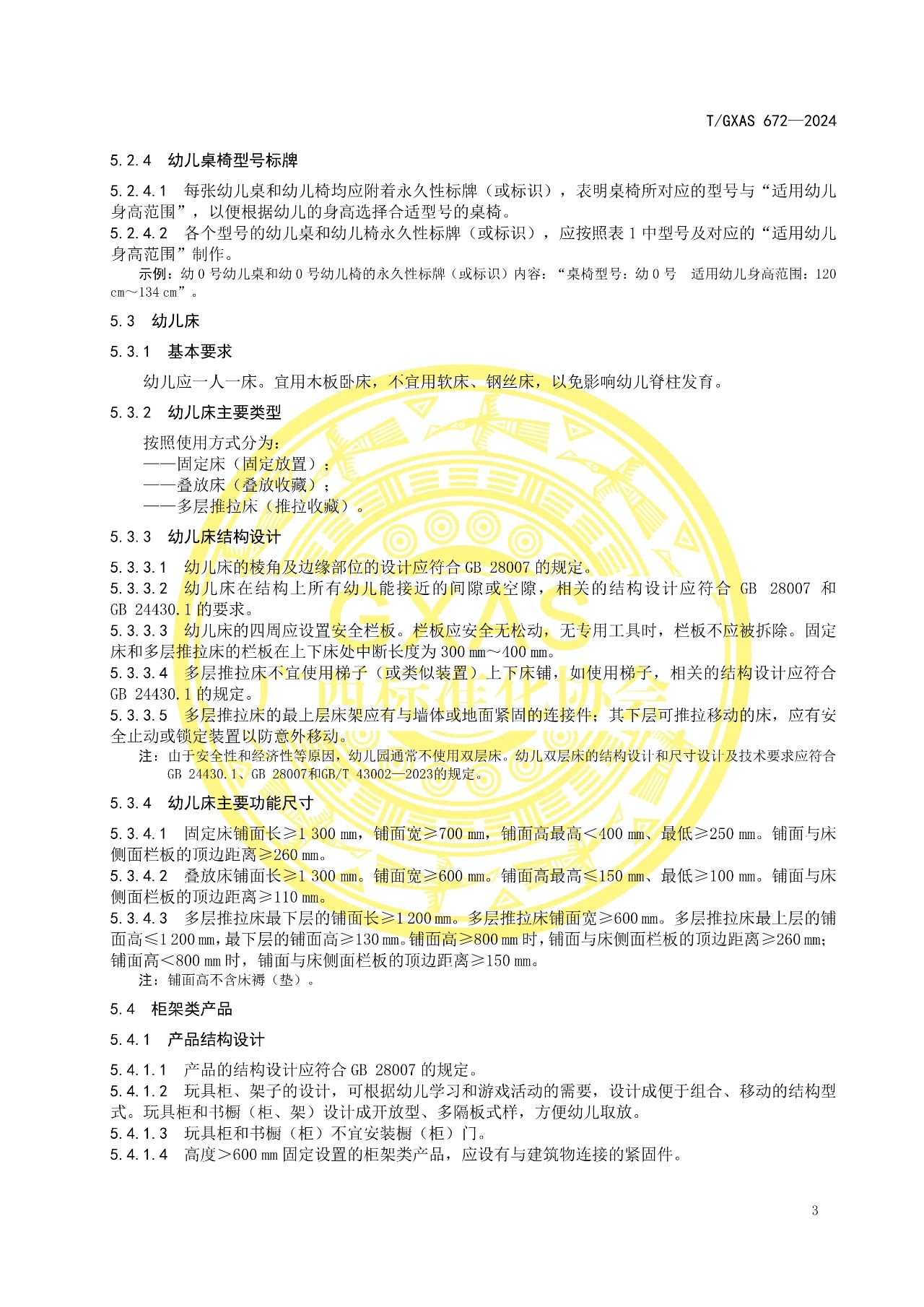 《幼兒園家具通用技術要求》團體標準規定了幼兒園家具的術語和定義,涵蓋了幼兒園家具的產品分類及配置、設計要求、技術要求、試驗方法、檢驗規則、標志、使用說明、包裝、運輸和貯存。其主要技術內容包括外觀、材料理化性能、有害物質限量、阻燃性能、警示標識、家具安裝等。