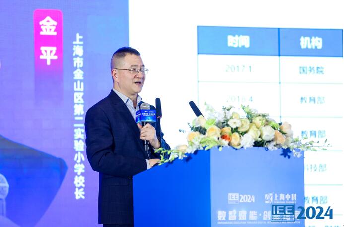 開幕式當天舉辦了“數智賦能·創新培育”主旨論壇,王富、蘇忱致辭。論壇上,上海市教育委員會副主任王浩、上海市寶山區教育局局長張治作主旨報告。隨后,上海市閔行區教育學院院長朱靖、上海市金山區第二實驗小學校長金平、上海市曹楊第二中學附屬學校副校長李冬、上海市延安中學校長李德元作微報告交流。論壇通過對教育數字化轉型多視角審視、多維度探討,探索在新質生產力的發展浪潮中,數智賦能學校實踐路徑、創新培育人才成長空間,助力營建更加和諧美好的教育生態。