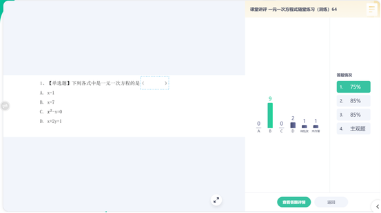 課堂上,老師在完成一個階段的知識點講授后,可以通過隨堂實時檢測的方式來了解全班同學的學習效果。