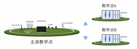 在主講端體育場,銳取云端體育課解決方案以yCat無線便攜錄播系統、AI體鍛屏幕、智能運動負荷采集設備等,對運動信息進行采集、分析,以全自動跟蹤學生活動區域畫面,實現運動畫面與運動數據同步記錄,并實時傳遞于聽講端體育場,打造優質、高清的云端互動體育課。在互動體育課中,銳取智慧體育數據平臺可實現精準、安全的體育教學與監測,助力體育教學工作更加科學化便捷化。