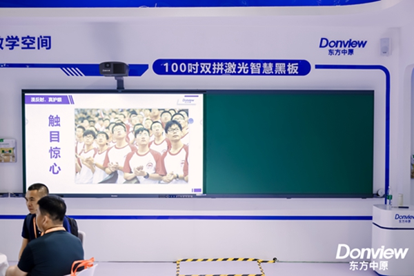 今年,東方中原最具特色的是在去年普教展推出的第一代激光智慧黑板基礎上研發改進新推出了第二代激光智慧黑板。第二代產品上除了外觀的一些改進外,東方中原更投入了大量時間和精力專注研究抗光技術,為設備增添教育專用抗光材質,使得產品使用起來的視覺感受更加清晰明亮。同時,第二代激光智慧黑板,可以做到比大屏的亮度更高,銳度更好,色彩更鮮艷,這是以往任何投影設備都基本無法做到的。更重要的是,新的激光智慧黑板不僅遠觀清晰明亮,而且近看光線柔和一點不刺眼。可以這樣說,這款產品匯聚了智慧黑板和投影機的所有優點,又規避了大屏和投影機的一些明顯缺點。