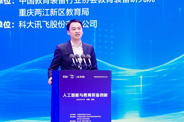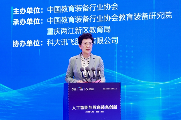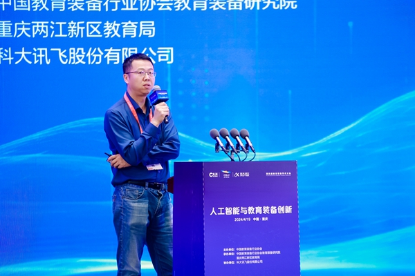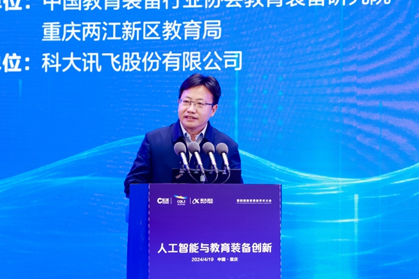 2024年4月19日下午,采用線上線下線下相結合的方式,由中國教育裝備行業協會主辦,中國教育裝備行業協會教育裝備研究院、重慶兩江新區教育局聯合承辦,科大訊飛股份有限公司協辦的第四屆教育裝備學術大會在重慶召開,以線上線下線下相結合的方式舉辦。中國教育裝備行業協會黨支部書記、會長靳諾,重慶市教委二級巡視員竇曉明,北京師范大學原副校長陳麗,國家語委中國語言智能研究中心主任、首都師范大學原副校長周建設中國教育裝備行業協會副會長夏國明,等領導及專家出席大會。本屆大會是第83屆中國教育裝備展示會系列學術活動之一,以“人工智能與教育裝備創新”為主題,從理論及和實踐的視角進行研討,旨在幫助參會者了解生成式人工智能將會給教育的未來帶來哪些新場景,、如何實施“人工智能賦能行動”。會議由中國教育裝備行業協會教育裝備研究院常務副院長施建國主持。