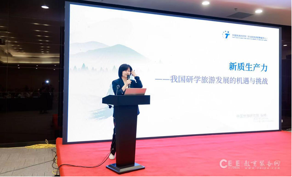 論壇的主題報告環節,中國旅游研究院副研究員張楊、人民教育出版社編審劉健、秦皇島教師與教研中心書記盧志新、人教文化交流中心副主任袁冶分別以“新質生產力:我國研學旅游發展的機遇與挑戰”“核心素養視域下的研學實踐課程開發與實施”“科技引領創新推動 全面深化研學教育”“構建行業協同新生態 打造實踐育人新格局 人教研學在中小學研學實踐教育領域的探索與思考”為題,從不同視角分享了各自對我國研學實踐教育的思考和洞察。