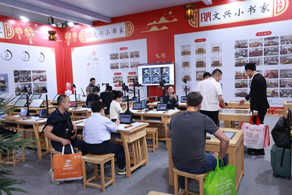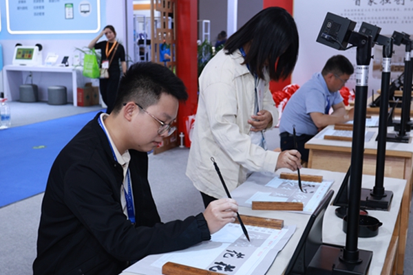 本屆展會文興主要帶來了智慧書法教室,智慧美術教室,智慧沙畫教室,數字棋藝教室。而這次展會的產品亮點和特色,是書畫投射臨摹臺和書畫創新教室。書畫投射臨摹臺是利用5G無線傳輸技術和投影技術集成的一款新產品,將教師中控機,書法視頻、圖片,課件內容等一鍵同屏于學生桌面。能高清觀看字帖,學習臨摹書法,投射尺寸從21.5寸至108寸之間,投射面積擴,完全滿足大畫面臨摹和大畫面播放要求。書畫創新教室,能實現書法美術一體化建設,能滿足書法教學的前提,又能滿足美術繪畫要求。本款產品的亮點,就是可實現上下升降功能,可實現軟筆,硬筆,粉筆等教學需要。