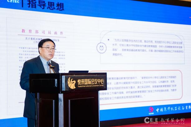 2024年4月19日,第83屆中國教育裝備展示會同期舉辦數(shù)字賦能校園安全工作交流會。教育部科學(xué)技術(shù)與信息化司教育信息化與網(wǎng)絡(luò)安全處處長任昌山出席會議并致辭,中國教學(xué)儀器設(shè)備有限公司黨委書記黃剛、中國電信教育行業(yè)事業(yè)部副總裁趙添乘出席會議并發(fā)表講話。教育部基礎(chǔ)教育教學(xué)指導(dǎo)專業(yè)委員會安全教育指導(dǎo)專委會主任李雯、中國教育裝備行業(yè)協(xié)會秘書長李瀛等專家做了專題報(bào)告,來自多地教育管理部門、學(xué)校、教育裝備機(jī)構(gòu)200多人參加了本次會議,陜西、云南等省教育廳負(fù)責(zé)安全的同志參會并做了經(jīng)驗(yàn)交流。
