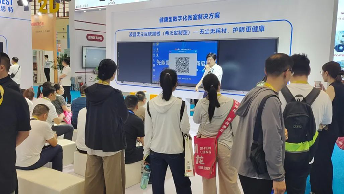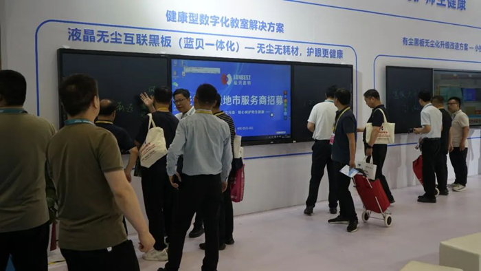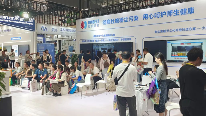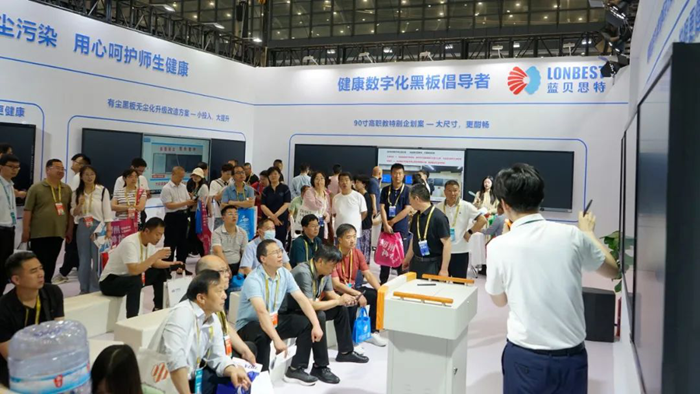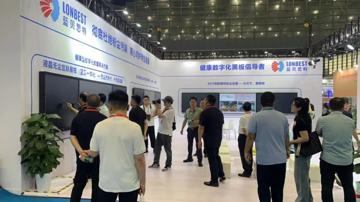 在為期三天的展會中,藍(lán)貝思特展區(qū)人頭攢動,吸引了眾多參觀者的目光。光能黑板憑借以其綠色環(huán)保、無粉塵無污染的特性,以及對學(xué)生視力和健康的保護(hù)效果,得到了廣大參觀者的高度評價(jià)。藍(lán)貝思特的光能板不僅滿足了教育裝備市場的需求,更體現(xiàn)了公司在科技創(chuàng)新和環(huán)保理念方面的領(lǐng)先地位。