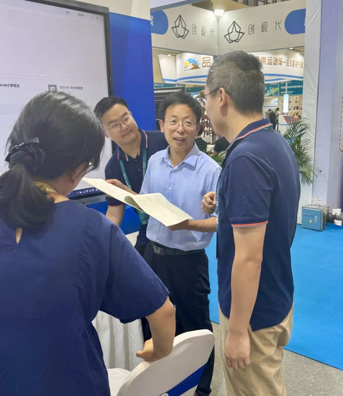 華數教育成立五年來,始終秉承“以科技賦能教育”的使命,提供內容出版、大數據平臺增值服務、數據在線分析、精準教學服務、數字教育資源開發、教育軟件技術開發、以及軟硬件產品的推廣與服務,并以大數據、人工智能等技術為基礎,研發紙數融合的新型評價工具,將科技融入日常教學。我公司展臺吸引了眾多參觀者駐足,現場互動氣氛熱烈。