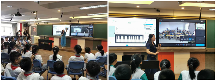 通過希沃?jǐn)?shù)字化技術(shù)與產(chǎn)品的落地應(yīng)用,荔灣區(qū)青少年宮和惠水縣多所學(xué)建設(shè)錄播教室,為兩地合唱課程同步教學(xué)提供了硬件基礎(chǔ)。案例詳細介紹道,“利用希沃錄播課室的遠程教育技術(shù)和平臺,實現(xiàn)三地六校的遠程教學(xué)和培訓(xùn),通過互聯(lián)網(wǎng)和移動設(shè)備將優(yōu)質(zhì)教育資源傳遞到這些地區(qū),提供平等的學(xué)習(xí)機會;有利于把數(shù)字化教學(xué)工具和教學(xué)、學(xué)科進行深度融合,用技術(shù)手段盤活優(yōu)質(zhì)資源,調(diào)動教師和學(xué)生雙方面的學(xué)習(xí)互動的愉悅性。”