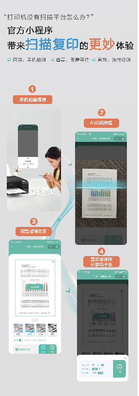 圖:通過愛普生云打印小程序,只需四步單功能打印機原地“升級”為三合一打印機