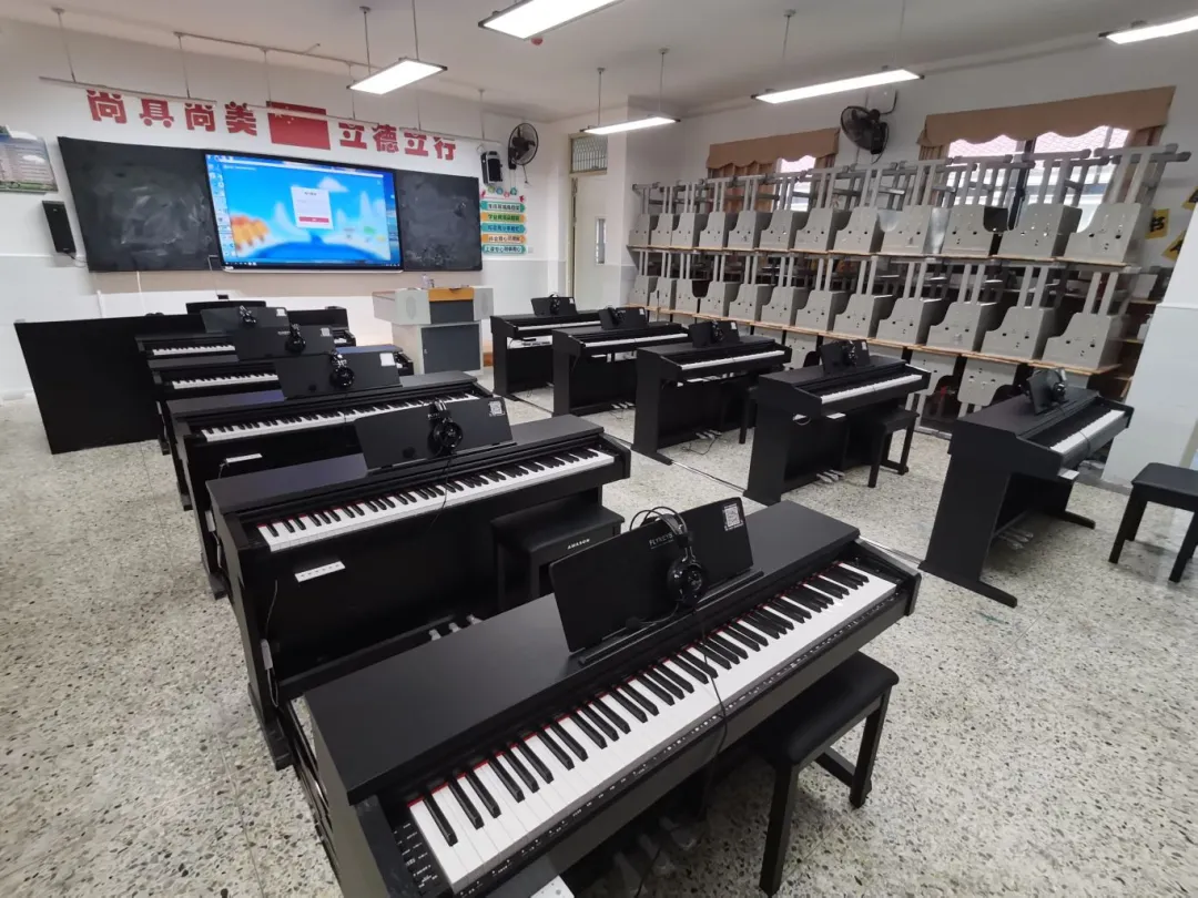 2024年7月,金三惠數字音樂教室走進武漢黃陂區實驗小學,為學校提供了10+1的電鋼琴教室,配備了金三惠電鋼琴教學系統、電鋼琴、數字音樂教學儀等教學教具等。