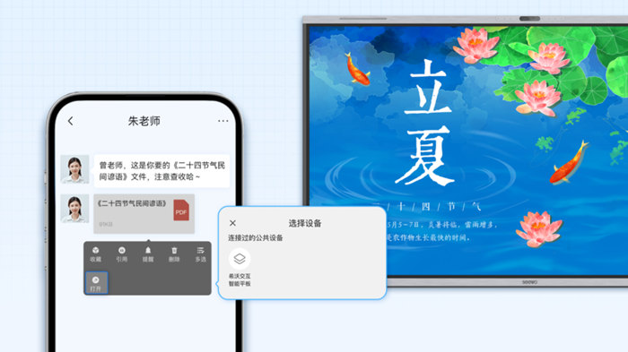 據了解,本次合作的動態是希沃文件傳輸功能將升級為更加方便用戶操作的「微信文件傳輸」功能。在教學場景中,教師們常常面臨課件傳輸不便的問題,以往的課件傳輸往往需要借助U盤或在教室大屏上登錄微信,而通過「微信文件傳輸」功能,老師們不再需要在希沃交互智能上下載或登錄微信,通過安裝更新后的“文件傳輸”應用,即可更加便捷地將手機中的文件傳輸到希沃交互智能平板上,大大提升了教學效率和體驗,使得教學過程更加流暢、自然,也保護了個人隱私。