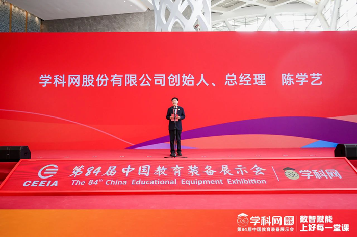 ▲在開幕式上,學科網創始人、總經理陳學藝作為參展商代表致辭