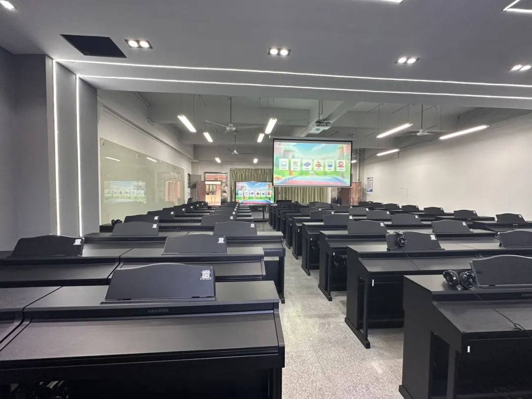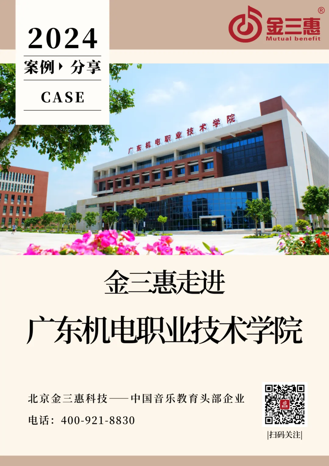 2024年11月,金三惠數字音樂教室為廣東機電職業技術學院提供、安裝、培訓了60+1的電鋼琴教室,配備了金三惠電鋼琴教學系統、電鋼琴、數字音樂教學儀等教學教具等。