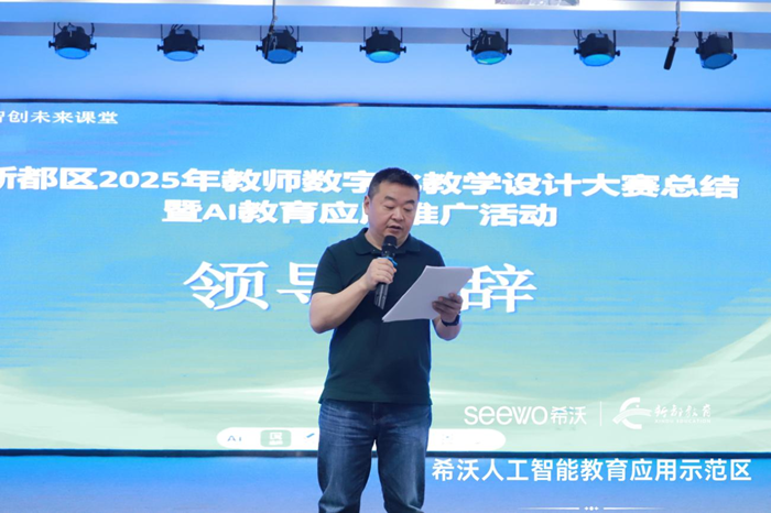 最后,四川省成都市新都區教科院魏萬科院長為活動作總結發言。他強調,教育數字化轉型是時代必然趨勢,本次活動是四川省成都市新都區在此道路上邁出的堅實一步。他高度肯定了廣大教師特別是獲獎團隊的探索精神,并鼓勵全區教育工作者持續擁抱技術、深化實踐,讓AI真正成為助力學生全面發展和未來成長的強大引擎。