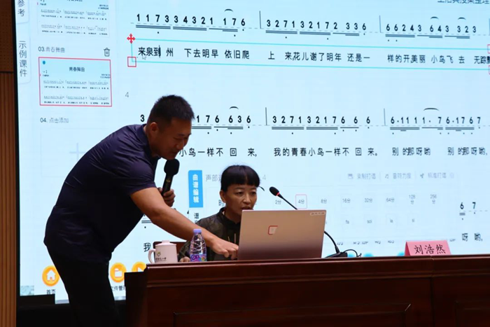 劉浩然老師深入淺出地剖析了金三惠數(shù)字音樂教學(xué)軟件中的AI技術(shù)在音樂創(chuàng)作、教學(xué)輔助、個性化學(xué)習(xí)等領(lǐng)域的應(yīng)用原理與突出優(yōu)勢,特別是AI教唱、智能伴奏等數(shù)字工具的核心功能與操作方法,并結(jié)合實(shí)際教學(xué),生動展示了如何將這些先進(jìn)工具深度融入日常音樂教學(xué)場景。