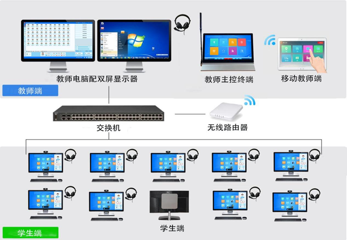 系統特點:學生終端機數碼設計,采用DSF數字信息處理技術,采用5.1寸大屏幕液晶顯示。外語學習自助餐模式,學生可根據自身情況選擇外語資料,并在學生端進行測試。“MF3 Database”豐富齊全的語言素材庫,采用當今世界最主流的MP3/WAV音頻文件格式,用很小的存儲空間保存海量音頻素材,學生可隨時調取。查字典單詞標準讀音屏幕點詞翻譯(電子辭典模糊查詢),當學生閱讀文本遇到生詞時,可用方向鍵移動光標,即可翻譯。口語錄音超級數字錄音,錄音時間無限制、自主錄音口語訓練,統一由教師機硬盤保存。