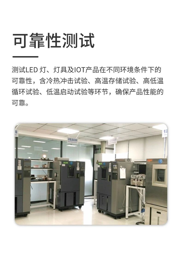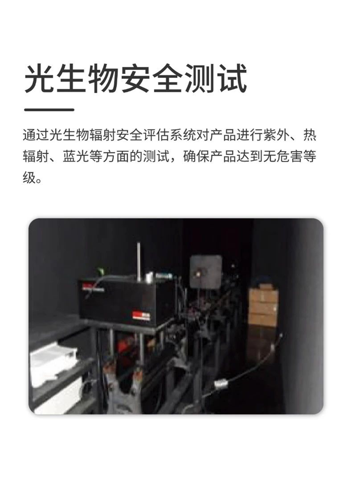 立達信產品在研發階段,都需歷經性能測試、可靠性測試、安全測試、電磁兼容測試、光生物安全測試、ROHS測試、壽命測試,涵蓋7大維度、34項嚴苛測試。