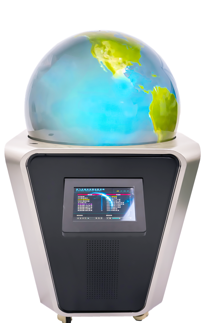 數字化地理教室則將廣闊的天地搬進了課堂。多媒體球幕投影演示儀是其數字化地理教室的核心教學設備,以沉浸式技術重構地理知識呈現方式。該設備采用直徑1.2米的無縫球形幕布懸浮設計,搭載4K超清投影技術,可逼真還原地球全貌、太陽系行星運動及自然現象。師生只需通過手勢操控,即可實現視角縮放、場景切換,從宏觀星系運轉到微觀地貌侵蝕一鍵呈現。