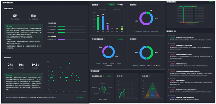 過去,傳統教研模式依賴主觀經驗和片段式觀察,難以實現常態化指導。而AI智能反饋系統突破了這些局限,它能記錄教師的每一次提問、走動軌跡和互動瞬間,生成實時反饋報告,并提出教學改進建議。這種精準、多維的課堂數據分析,使教研活動更具靶向性。為老師們提供了前所未有的反思視角和改進方向,幫助他們優化教學表現,提升課堂效果。