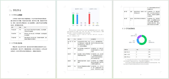 課后,課堂智能反饋系統化身“AI教研員”,識別師生互動等關鍵片段,生成實時的反饋報告,并提出AI教學建議。精準、豐富、多維的課堂數據分析,幫助教師及時反思教學表現,不斷優化改進。