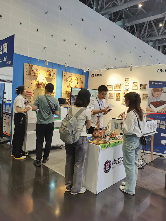 互動體驗區:為了讓觀眾更直觀地了解產品,中澤科教特別設置了互動體驗區,參觀者可以親自操作激光切割機,體驗其精準和高效。