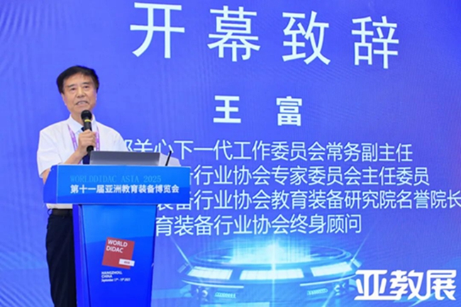 教育部關(guān)心下一代工作委員會(huì)常務(wù)副主任、中國(guó)教育裝備行業(yè)協(xié)會(huì)專家委員會(huì)主任王富應(yīng)邀出席會(huì)議并致辭。他對(duì)溫州教育裝備產(chǎn)業(yè)的發(fā)展成就以及《溫州市“人工智能+教育”三年行動(dòng)計(jì)劃》的發(fā)布予以充分肯定,并提出智能教育裝備應(yīng)推進(jìn)跨界融合、資源整合、行業(yè)聯(lián)合與專精結(jié)合,構(gòu)建“四橫五縱”的資源布局與AI賦能體系。其中,“四橫”涵蓋基礎(chǔ)教育、高等教育、職業(yè)教育和終身教育;“五縱”則對(duì)應(yīng)德育、智育、體育、美育和勞動(dòng)教育,體現(xiàn)“五育并舉”的育人理念。