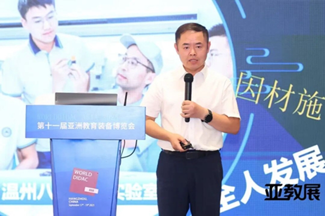 從溫州出來(lái)到北京創(chuàng)業(yè)的北京威成亞實(shí)驗(yàn)設(shè)備有限公司的葉鵬翔,進(jìn)一步延伸了AI+實(shí)驗(yàn)教學(xué)的討論。他在《AI+實(shí)驗(yàn)教學(xué)的思考與實(shí)踐》中提出,應(yīng)通過(guò)智能硬件與軟件系統(tǒng)結(jié)合,構(gòu)建開放、可擴(kuò)展的實(shí)驗(yàn)教學(xué)環(huán)境,助力培養(yǎng)學(xué)生科學(xué)探究與創(chuàng)新能力,讓學(xué)生上好每一堂實(shí)驗(yàn)課。