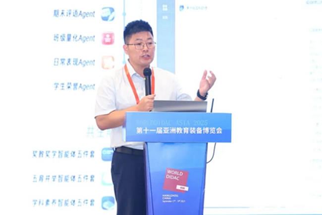 中科智教(蘇州)智能科技有限公司的丁志斌聚焦中學(xué)實(shí)驗(yàn)教學(xué),分享了題為《人工智能在中學(xué)實(shí)驗(yàn)教學(xué)及考試中的應(yīng)用》。他通過(guò)實(shí)際案例,展示AI技術(shù)在實(shí)驗(yàn)操作評(píng)價(jià)、智能監(jiān)考與個(gè)性化反饋中的具體應(yīng)用,為實(shí)驗(yàn)教學(xué)數(shù)字化轉(zhuǎn)型提供了新思路。