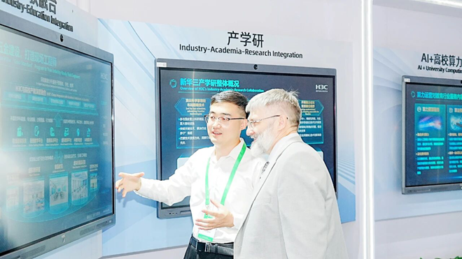 深耕教育領(lǐng)域多年,新華三已服務(wù)全國超2600所高等院校和科研機(jī)構(gòu),實(shí)現(xiàn)100%雙一流高校覆蓋,并為清華大學(xué)、北京大學(xué)等40余所頂尖院校提供智慧校園頂層規(guī)劃服務(wù),成為推動教育數(shù)字化轉(zhuǎn)型的核心力量。此次展會,新華三基于“算力×聯(lián)接”、“AI+教育”、“教育科研一體兩翼”三大核心板塊,帶來技術(shù)與場景深度融合的創(chuàng)新解決方案。
