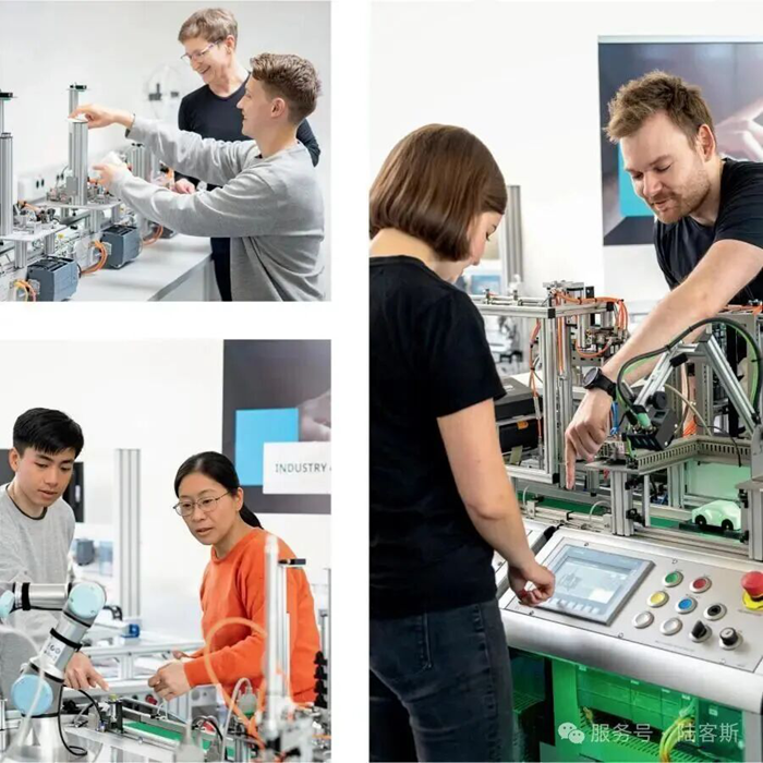 在上海陸客斯團隊負責人的陪同下,領導嘉賓們依次參觀了工業自動化實訓平臺、新能源汽車電池檢測系統等教學演示區。在工業自動化實訓平臺前,團隊成員詳細演示了 “虛實結合” 的教學模式:學員通過虛擬仿真軟件完成前期理論模擬操作后,可直接在實體設備上進行實操訓練,系統能實時反饋操作數據并生成個性化學習報告。領導們對此高度評價,認為這種模式 “精準解決了職業教育中‘理論難落地、實操有風險’的痛點,為全球職業教育實訓體系建設提供了可借鑒的范本”。