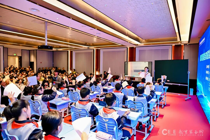 在互動課堂展示環節,南京市曉莊小學教科室主任劉珍妮以學校課堂教學《用字母表示數和數量關系》為例,展示了人工智能與教學評價有機結合的應用。“將教學情景搬進展會是一次創新,體現了對人工智能推動課堂教學變革的信心。”江蘇省教育裝備與勤工儉學管理中心黨總支書記、主任,江蘇省教育裝備行業協會會長沈本領在專家點評環節表示,這堂課展示了無感捕捉教學信息技術在課堂中的實際應用,這是給教師配備了一個長期診斷課堂的助手,利于教師的專業快速發展。
