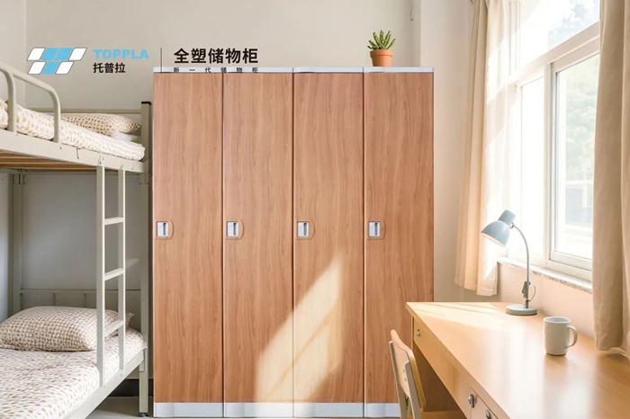 除核心的教室場景外,托普拉更將全塑儲物柜的應用延伸至校園多維場景,打造 “教、學、住、管” 全覆蓋的存儲方案,成為展會期間的另一大亮點。