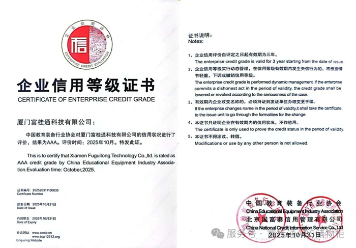 近日,經(jīng)國內(nèi)權(quán)威評級機構(gòu)綜合評定,廈門富桂通科技有限公司(以下簡稱“富桂通”)再獲重量級國家級榮譽——企業(yè)信用等級AAA級!這不僅是對富桂通經(jīng)營實力、履約能力與品牌信譽的最高肯定,更標志著富桂通正式躋身行業(yè)信用“天花板”陣營,成為教育裝備領(lǐng)域當之無愧的誠信標桿!