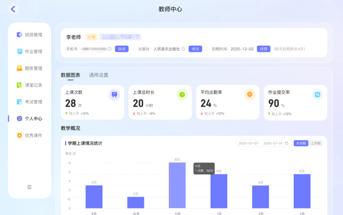 借助AI技術,教師可以實時掌握課堂進度、學生學習狀態和練習數據,實現教學全局可視化。從課堂到課后,從演奏到創作,每一步學習軌跡盡在掌握,讓教學更有條理、更高效。