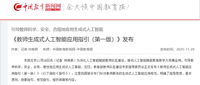 近日,教育部教師隊伍建設(shè)專家指導(dǎo)委員會正式發(fā)布《教師生成式人工智能應(yīng)用指引(第一版)》,為引導(dǎo)教師愿用、會用、善用,并且科學(xué)、理性地應(yīng)用生成式人工智能繪制了清晰的“應(yīng)用地圖”,確立了教師應(yīng)用生成式人工智能的方向。