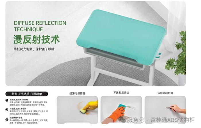 柜體采用食品接觸級ABS和HIPS工程塑料,材質安全環(huán)保、堅固耐用,具備抗沖擊、耐腐蝕、防潮不變形等特點。模塊化設計使其能夠靈活適應不同教室的空間布局,全年段均有適配規(guī)格。