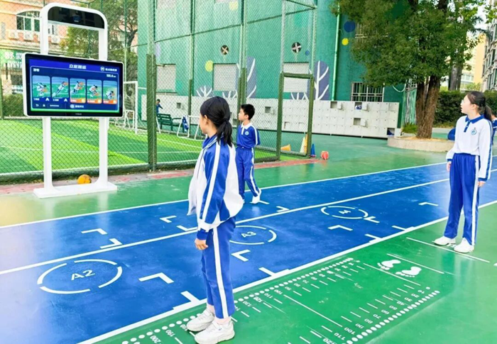 AI體育角一體屏設計,一臺設備融合多項體感運動項目,在有限空間內創造出豐富的趣味運動場景。人臉識別與肢體智能交互功能,滿足學生自助式玩耍、游戲化參與,多人同玩模式不僅活躍了課堂氛圍、減輕了教師的課堂組織負擔,更極大激發了學生的運動興趣,使學生在玩耍中鍛煉身體,增強體魄。