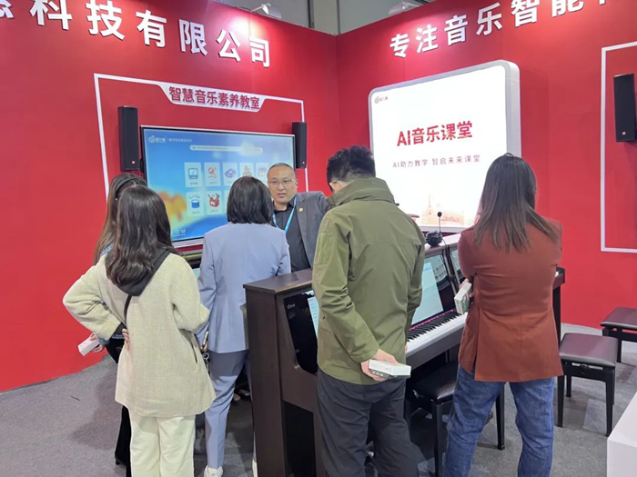 展會現場,金三惠的工作人員耐心地為每一位參觀者講解產品的特點與優勢,參觀者紛紛拿出手機拍照記錄,現場體驗了自動演奏鋼琴、數字音樂教學平臺等產品,感受到了科技與音樂教育結合的無限可能。
