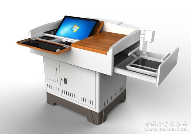 產品詳細介紹二、數位講桌 型號:FK530 1、材料:金屬灰桌面、冷軋鋼板桌體、防潮防銹的塑鋼底腳板和前U型塑鋼桌臉; 2、外觀:正前方有雙U型設計,方便印;,并與塑鋼底板腳的U型呼應;鋼塑扶手分層設計,即美觀結實,又加固強度;整體外觀流線型設計,無菱角,保護師生安全; 3、外置功能:桌面平整,老師上課只需一把鎖匙,可擴充IC卡電鎖; 4、內置功能:桌體內置可放置19寸-22寸液晶顯示器的翻轉板,仰角任意可調;翻轉鍵盤板,鍵盤板下的塑鋼盒內,有專門用于放中控面板、鼠標、筆記本電腦接線、便攜展示臺、水筆、水性筆擦等位置;側面可內置側抽拉大展示臺抽屜,承重≥20公斤; 5、尺寸:按中小學老師的人體力學設計的漸寬式扶手,講桌長寬高(CM),關閉:110* 75* 97;展開:195*105*97 6、安裝、防鼠:桌體采用拆裝設計,塑鋼底板設計了兩個防鼠網的過線孔。 7、防潮、防水、防銹:為防止桌面水杯的水或清潔桌面的水,以及潮濕天氣對講桌底腳板的腐蝕,所以桌面和底腳板均采用塑鋼材料。