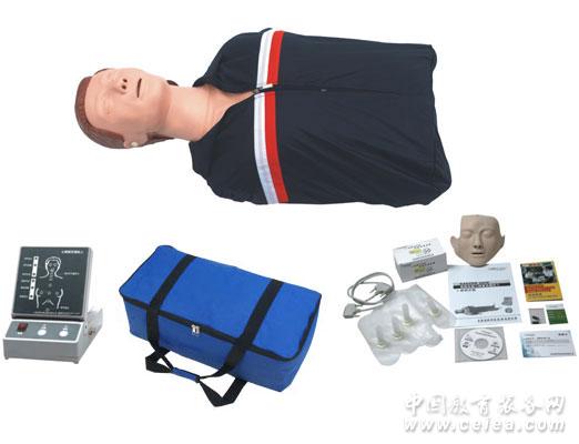 主要功能: 模擬標(biāo)準(zhǔn)氣道開放顯示。 人工手拉胸外按壓顯示報(bào)警: 1. 按壓位置正確、錯(cuò)誤的指示燈及錯(cuò)誤的報(bào)警。 2. 按壓強(qiáng)度正確(5~6cm區(qū)域)、錯(cuò)誤(<5cm<區(qū)域)的顯示分別由指示(黃、綠、紅)指示燈移動(dòng)的動(dòng)態(tài)反饋顯示CPR按壓深度及錯(cuò)誤的報(bào)警提示。 人工口對(duì)口呼吸(吹氣)顯示報(bào)警: 1. 吹入的潮氣量≤500ml~600ml≤的顯示由指示(黃、綠、紅)指示燈移動(dòng)的動(dòng)態(tài)反饋顯示吹氣量度及錯(cuò)誤的報(bào)警提示。 2. 吹入的潮氣量過(guò)快或超大,造成氣體進(jìn)入胃部指示燈顯示及報(bào)警。 按壓與人工呼吸比:30:2(單人或雙人) 操作周期:按壓與人工吹氣30:2五個(gè)循環(huán)周期CPR操作。 操作頻率:最新國(guó)際標(biāo)準(zhǔn):100次/分。 檢查瞳孔反應(yīng):模擬瞳孔由一只散大與一只縮小的比較認(rèn)識(shí)。 電源狀態(tài):采用220V電源,經(jīng)過(guò)穩(wěn)壓器穩(wěn)壓輸出電源6V。 材料特點(diǎn): 面皮膚、勁皮膚、胸皮膚、頭發(fā),采用進(jìn)口熱塑彈性體混合膠材料,由不銹鋼模具、經(jīng)注塑機(jī)高溫注壓而成,具有解剖標(biāo)志準(zhǔn)確、手感真實(shí)、膚色統(tǒng)一、形態(tài)逼真、外形美觀、經(jīng)久耐用、消毒清洗不變形、拆裝更換方便等特點(diǎn),其材料達(dá)到國(guó)外同等水平。 標(biāo)準(zhǔn)套配置: 高級(jí)膚色半身人體模型一具; 高級(jí)顯示器一臺(tái); 豪華手提袋; 屏障面膜(50張/盒)一盒; 可換肺囊裝置四套; 可換面皮一只; 保修卡、合格證; 使用手冊(cè)一本。 2010國(guó)際最新操作指南光盤1盤;